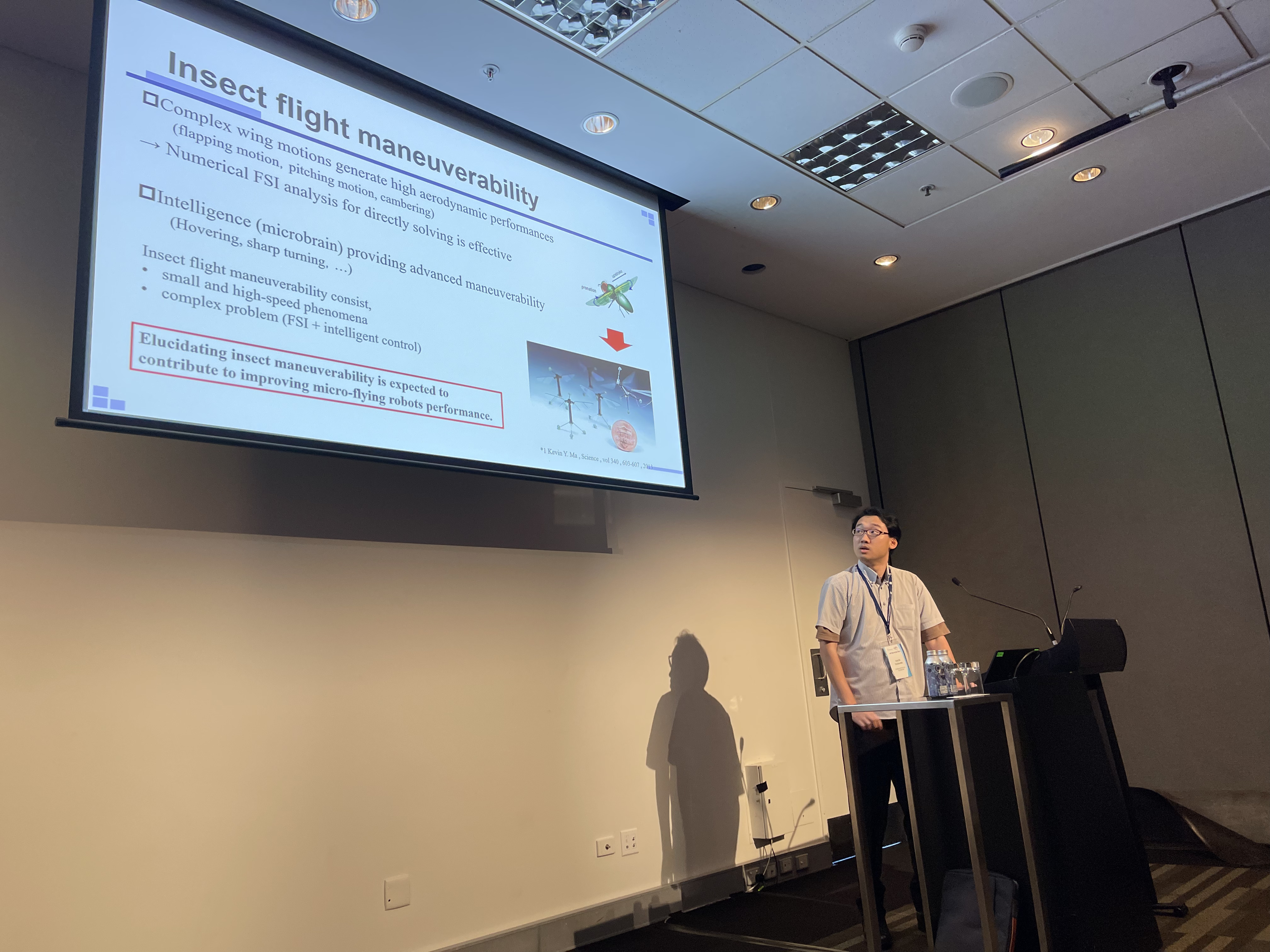 博士後期課程1年の杉川 楓さんがAPCOM-ACCM2025@Brisbane, Australia (https://www.apcom2025.org/)のミニシンポジウム”Computational Biomechanics and Biomimetics in Flying and Swimming (MS44)”で招待講演を行いました. K. Sugikawa, M. Onishi, D. Ishihara, Computational Fluid-Structure-Control Interaction Analysis for Insect Flight Maneuverability